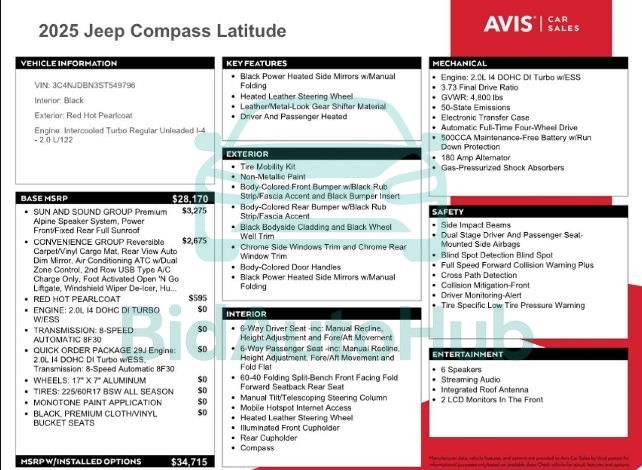 For a full understanding of the condition of this JEEP COMPASS 2025 - VIN: 3C4NJDBN3ST549796, it is strongly advised to analyze all available materials β both technical specifications and auction photographs. Such analysis provides the most objective picture of the carβs history, its advantages, and its potential defects.