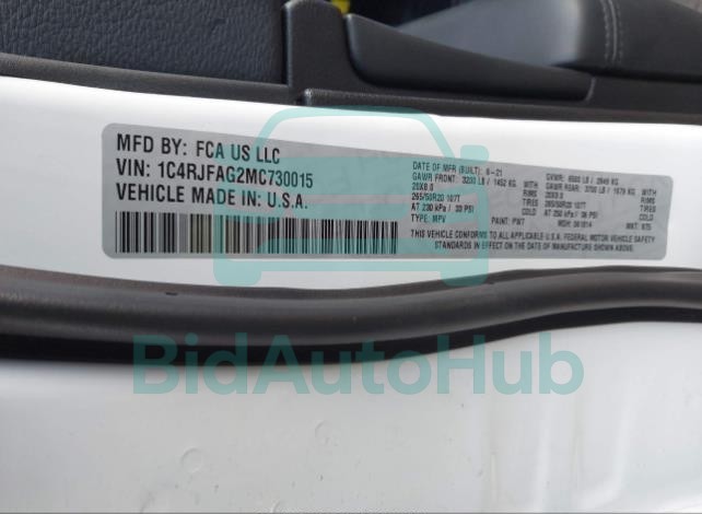 Each lot presented on our website includes comprehensive information tied to the VIN code. This allows users to cross-check vehicle data, verify the history of ownership, and confirm accident or insurance records. The JEEP GRAND CHEROKEE 2021 - VIN: 1C4RJFAG2MC730015 corresponds to a car that was listed through one of the large insurance auctions in USA, which guarantees traceability and transparency of the information.