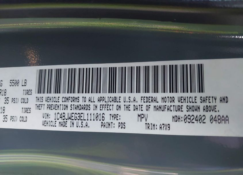 | VIN | 1C4BJWEG3EL111016 |