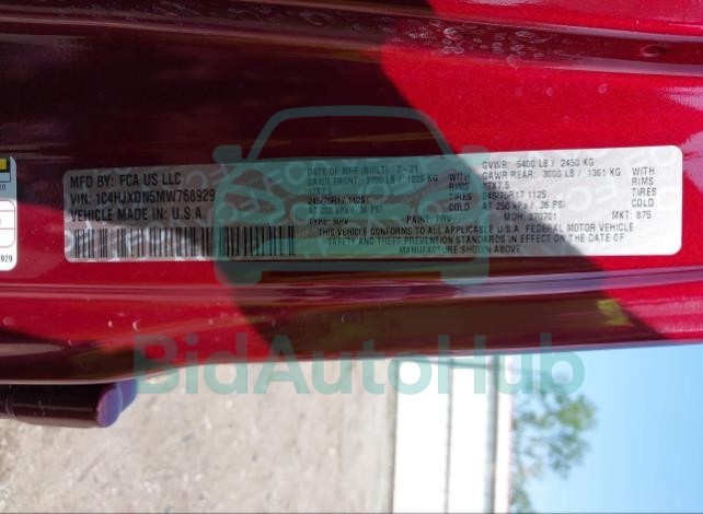 | VIN | 1C4HJXDN5MW768929 |