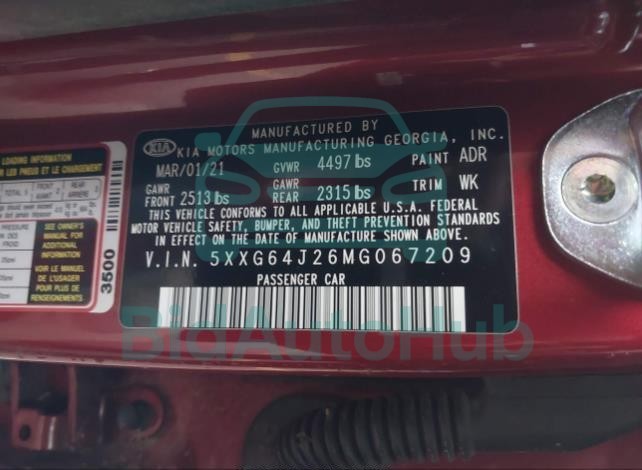 This KIA K5 2021 - VIN: 5XXG64J26MG067209 was originally purchased at one of the major insurance auctions in the United States or Canada. The vehicle history is tied directly to its VIN code, which makes it possible to track the origin, condition, and circumstances of the sale. The photographs provided represent the actual state of the car at the moment of auction and serve as an important visual record of its technical and cosmetic condition.
