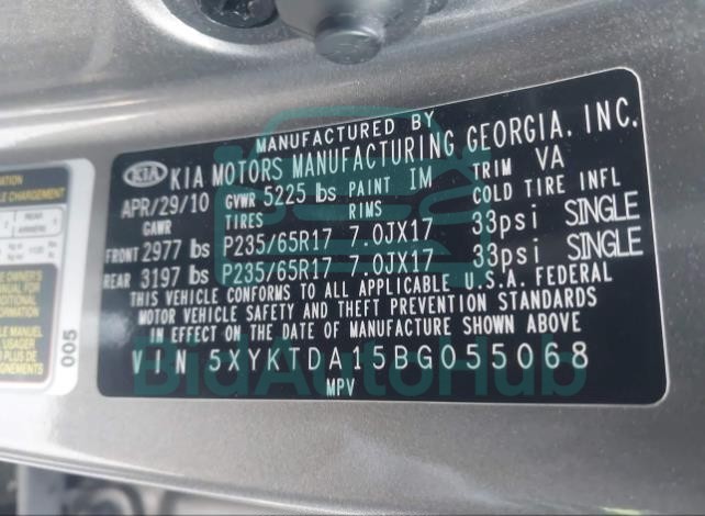 For a full understanding of the condition of this KIA SORENTO 2011 - VIN: 5XYKTDA15BG055068, it is strongly advised to analyze all available materials β both technical specifications and auction photographs. Such analysis provides the most objective picture of the carβs history, its advantages, and its potential defects.