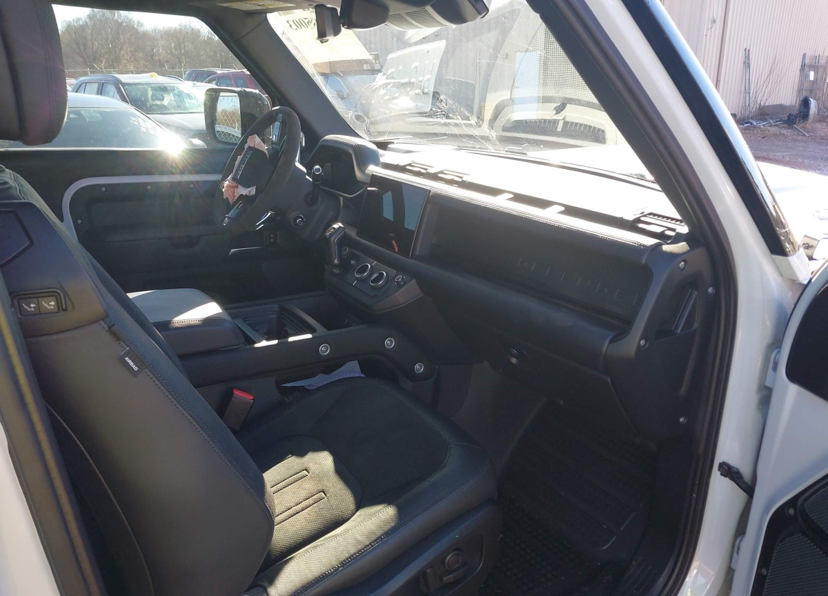 The Land Rover Defender 2022 White is equipped with a 5.0l v-8 di, dohc, vvt, supercharger, 518hp engine. This power unit is known for its efficiency and reliability, and it is part of modern generation of engines designed to balance performance with fuel economy. According to the auction data, the vehicle was registered with only 21630 of mileage at the time of sale.