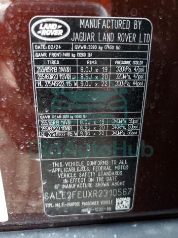 Each lot presented on our website includes comprehensive information tied to the VIN code. This allows users to cross-check vehicle data, verify the history of ownership, and confirm accident or insurance records. The LAND ROVER DEFENDER 2024 - VIN: SALE2FEUXR2310567 corresponds to a car that was listed through one of the large insurance auctions in USA, which guarantees traceability and transparency of the information.