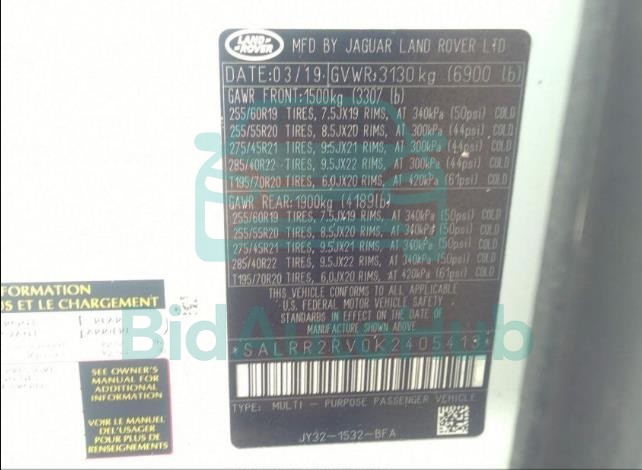 Each lot presented on our website includes comprehensive information tied to the VIN code. This allows users to cross-check vehicle data, verify the history of ownership, and confirm accident or insurance records. The LAND ROVER DISCOVERY 2019 - VIN: SALRR2RV0K2405413 corresponds to a car that was listed through one of the large insurance auctions in USA, which guarantees traceability and transparency of the information.