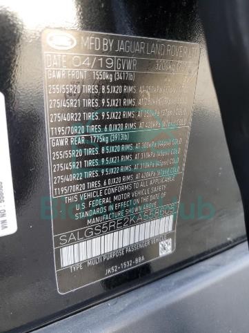 The LAND ROVER RANGE ROVER 2019 - VIN: SALGS5RE2KA558605 is equipped with a 5.0l 8 engine. This power unit is known for its efficiency and reliability, and it is part of modern generation of engines designed to balance performance with fuel economy. According to the auction data, the vehicle was registered with only 120404 miles of mileage at the time of sale.