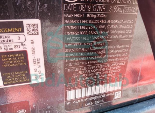 For a full understanding of the condition of this LAND ROVER RANGE ROVER 2020 - VIN: SALGS2SEXLA577672, it is strongly advised to analyze all available materials β both technical specifications and auction photographs. Such analysis provides the most objective picture of the carβs history, its advantages, and its potential defects.
