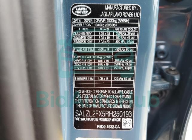 | VIN | SALZL2FX5RH250193 |