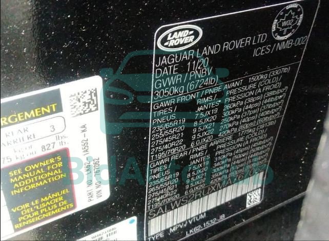 Each lot presented on our website includes comprehensive information tied to the VIN code. This allows users to cross-check vehicle data, verify the history of ownership, and confirm accident or insurance records. The LAND ROVER RANGE ROVER SPORT 2021 - VIN: SALWS2RUXMA767062 corresponds to a car that was listed through one of the large insurance auctions in USA, which guarantees traceability and transparency of the information.