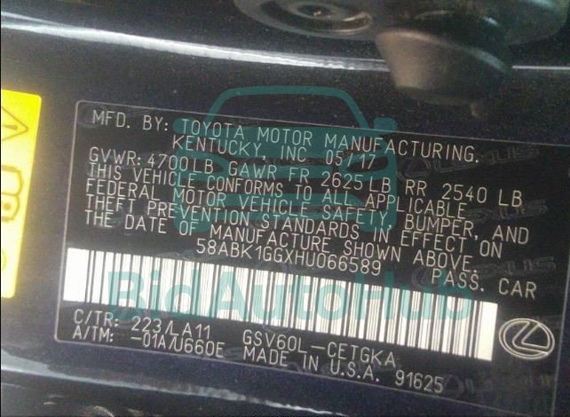 Each lot presented on our website includes comprehensive information tied to the VIN code. This allows users to cross-check vehicle data, verify the history of ownership, and confirm accident or insurance records. The LEXUS ES 2017 - VIN: 58ABK1GGXHU066589 corresponds to a car that was listed through one of the large insurance auctions in USA, which guarantees traceability and transparency of the information.