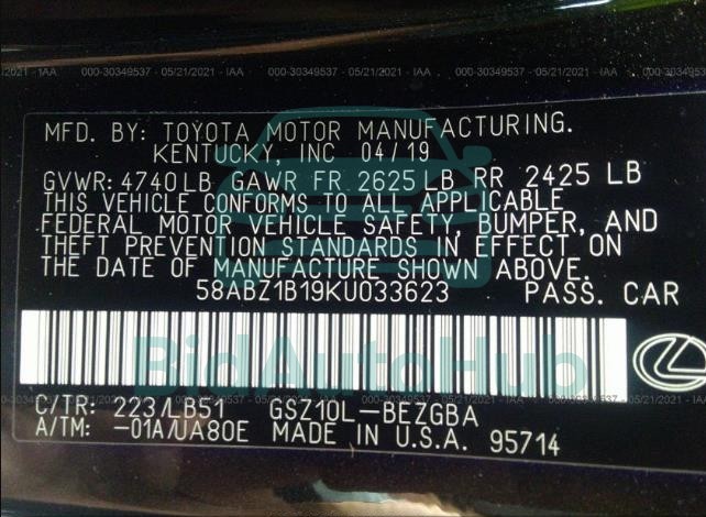 Each lot presented on our website includes comprehensive information tied to the VIN code. This allows users to cross-check vehicle data, verify the history of ownership, and confirm accident or insurance records. The LEXUS ES 2019 - VIN: 58ABZ1B19KU033623 corresponds to a car that was listed through one of the large insurance auctions in USA, which guarantees traceability and transparency of the information.