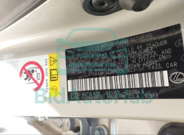 This LEXUS ES 350 2017 - VIN: 58ABK1GG8HU067823 was originally purchased at one of the major insurance auctions in the United States or Canada. The vehicle history is tied directly to its VIN code, which makes it possible to track the origin, condition, and circumstances of the sale. The photographs provided represent the actual state of the car at the moment of auction and serve as an important visual record of its technical and cosmetic condition.
