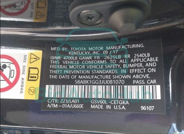 Each lot presented on our website includes comprehensive information tied to the VIN code. This allows users to cross-check vehicle data, verify the history of ownership, and confirm accident or insurance records. The LEXUS ES 350 2018 - VIN: 58ABK1GG3JU081070 corresponds to a car that was listed through one of the large insurance auctions in USA, which guarantees traceability and transparency of the information.