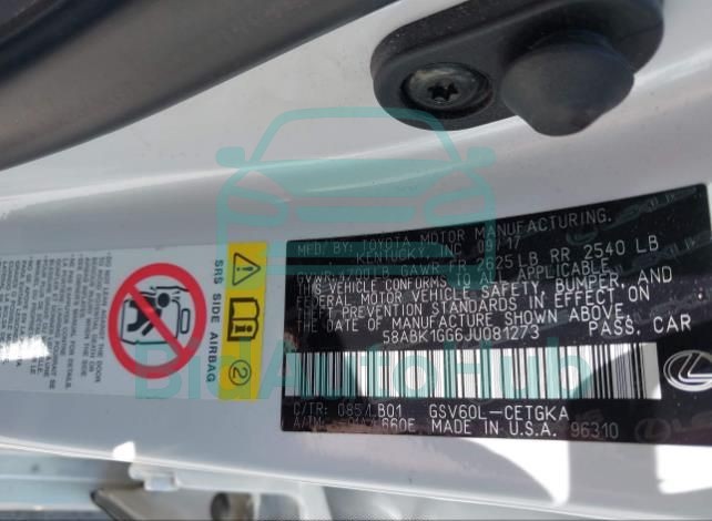 Each lot presented on our website includes comprehensive information tied to the VIN code. This allows users to cross-check vehicle data, verify the history of ownership, and confirm accident or insurance records. The LEXUS ES 350 2018 - VIN: 58ABK1GG6JU081273 corresponds to a car that was listed through one of the large insurance auctions in USA, which guarantees traceability and transparency of the information.