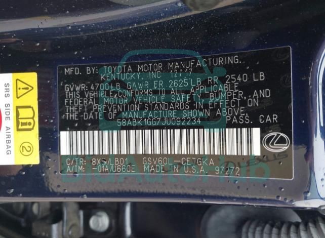 Each lot presented on our website includes comprehensive information tied to the VIN code. This allows users to cross-check vehicle data, verify the history of ownership, and confirm accident or insurance records. The LEXUS ES 350 2018 - VIN: 58ABK1GG7JU092234 corresponds to a car that was listed through one of the large insurance auctions in USA, which guarantees traceability and transparency of the information.