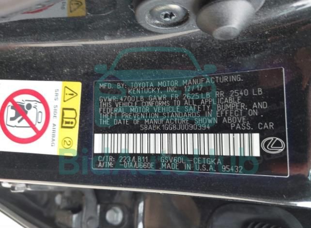 The LEXUS ES 350 2018 - VIN: 58ABK1GG8JU090394 is equipped with a 3.5l v-6 dohc, vvt, 268hp engine. This power unit is known for its efficiency and reliability, and it is part of modern generation of engines designed to balance performance with fuel economy. According to the auction data, the vehicle was registered with only 48911 miles of mileage at the time of sale.