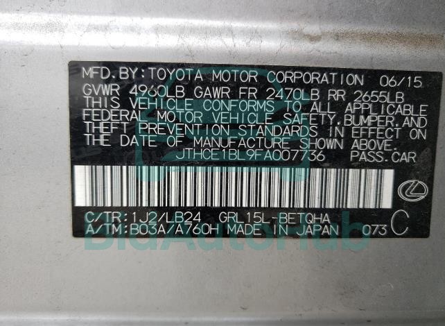 This LEXUS GS 350 2015 - VIN: JTHCE1BL9FA007736 was originally purchased at one of the major insurance auctions in the United States or Canada. The vehicle history is tied directly to its VIN code, which makes it possible to track the origin, condition, and circumstances of the sale. The photographs provided represent the actual state of the car at the moment of auction and serve as an important visual record of its technical and cosmetic condition.