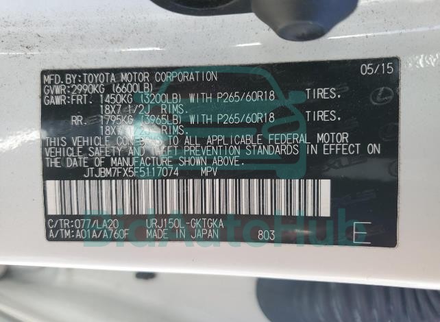 | VIN | JTJBM7FX5F5117074 |