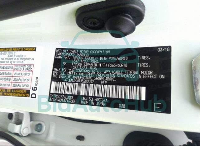 | VIN | JTJBM7FX0J5202042 |