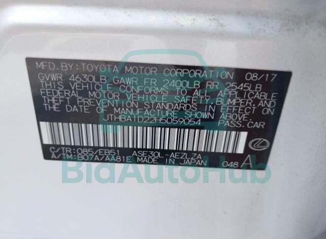 Each lot presented on our website includes comprehensive information tied to the VIN code. This allows users to cross-check vehicle data, verify the history of ownership, and confirm accident or insurance records. The LEXUS IS 200T 2017 - VIN: JTHBA1D22H5059054 corresponds to a car that was listed through one of the large insurance auctions in USA, which guarantees traceability and transparency of the information.