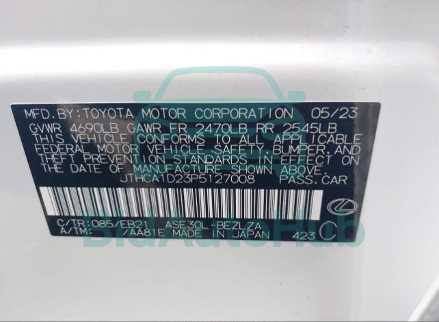 Each lot presented on our website includes comprehensive information tied to the VIN code. This allows users to cross-check vehicle data, verify the history of ownership, and confirm accident or insurance records. The LEXUS IS 300 2023 - VIN: JTHCA1D23P5127008 corresponds to a car that was listed through one of the large insurance auctions in USA, which guarantees traceability and transparency of the information.