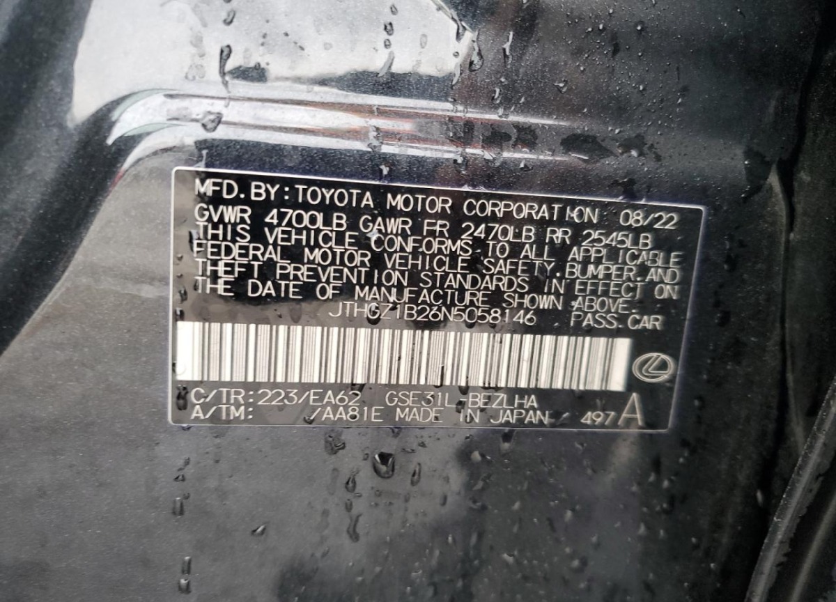 | VIN | JTHGZ1B26N5058146 |