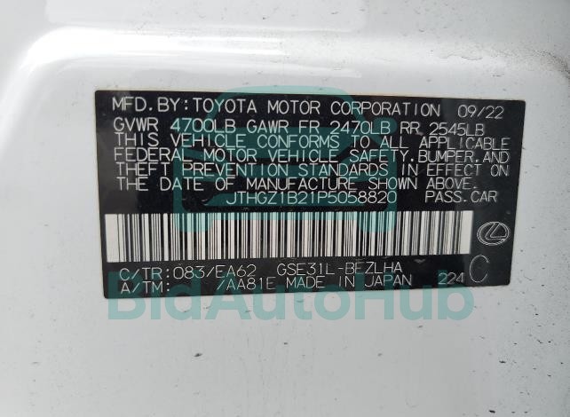 Each lot presented on our website includes comprehensive information tied to the VIN code. This allows users to cross-check vehicle data, verify the history of ownership, and confirm accident or insurance records. The LEXUS IS 350 2023 - VIN: JTHGZ1B21P5058820 corresponds to a car that was listed through one of the large insurance auctions in USA, which guarantees traceability and transparency of the information.