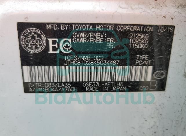 | VIN | JTHC81D28K5034487 |