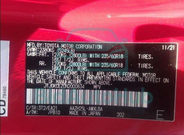 | VIN | JTJGKCEZ0N2000834 |