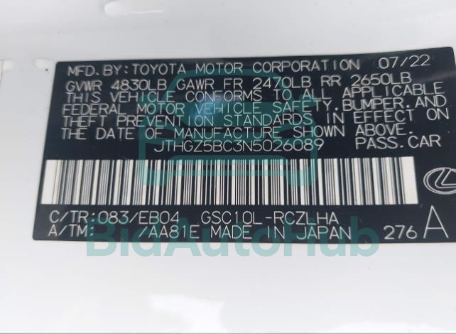 | VIN | JTHGZ5BC3N5026089 |