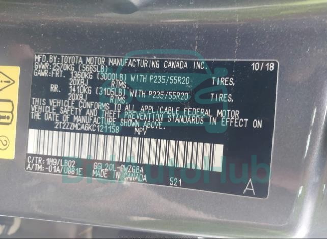 | VIN | 2T2ZZMCA6KC121158 |