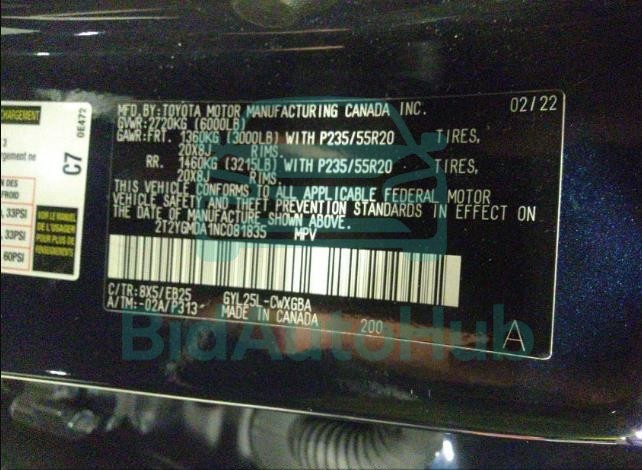 | VIN | 2T2YGMDA1NC081835 |