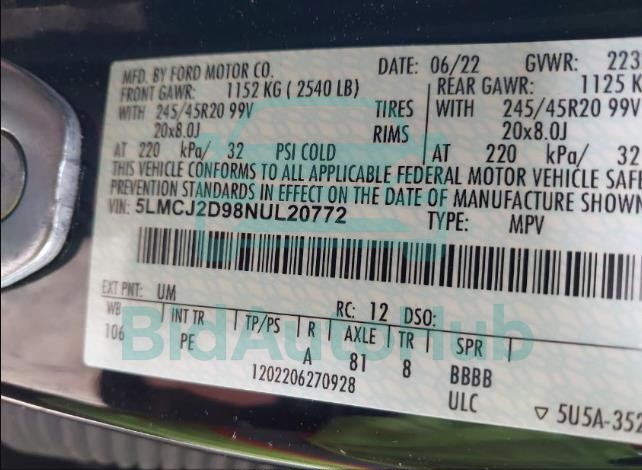 LINCOLN CORSAIR 2022 — VIN: 5LMCJ2D98NUL20772