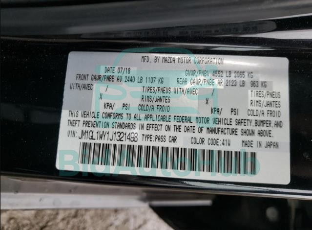 MAZDA 6 2018 — VIN: JM1GL1WY1J1321498