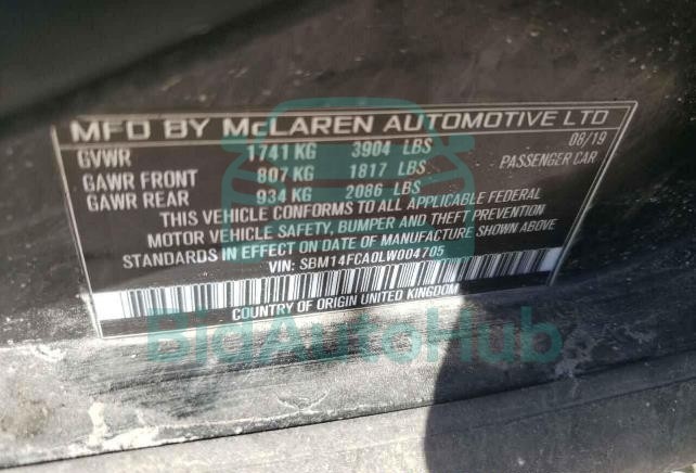 Each lot presented on our website includes comprehensive information tied to the VIN code. This allows users to cross-check vehicle data, verify the history of ownership, and confirm accident or insurance records. The MCLAREN AUTOMOTIVE ALL MODELS 2020 - VIN: SBM14FCA0LW004705 corresponds to a car that was listed through one of the large insurance auctions in USA, which guarantees traceability and transparency of the information.