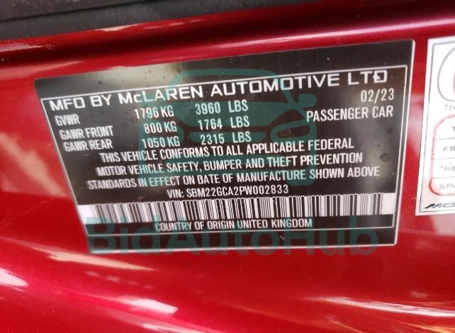 MCLAREN AUTOMOTIVE GT 2023 — VIN: SBM22GCA2PW002833