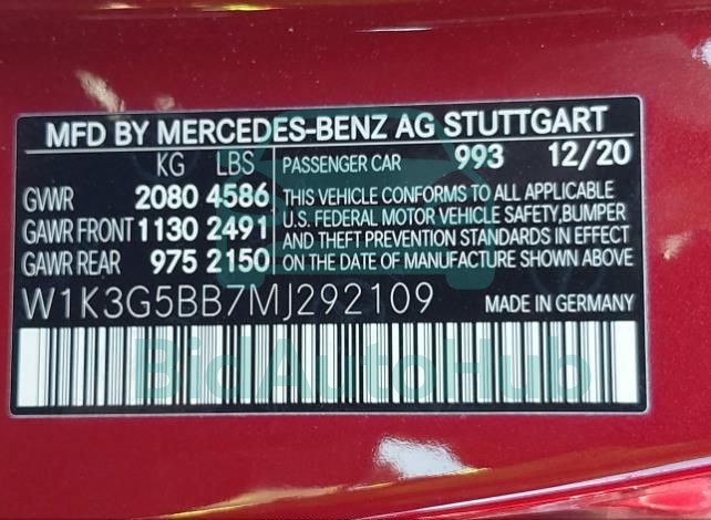 | VIN | W1K3G5BB7MJ292109 |