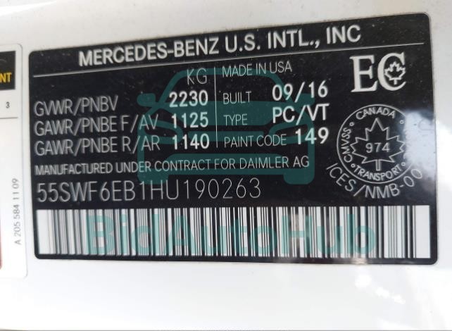 | VIN | 55SWF6EB1HU190263 |