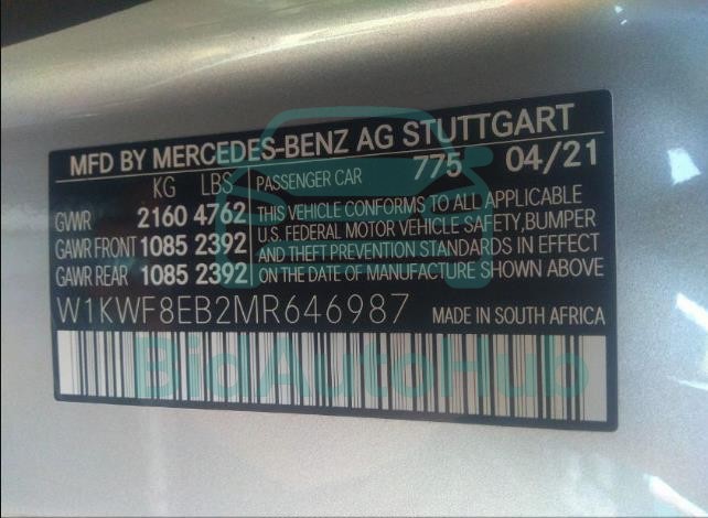 For a full understanding of the condition of this MERCEDES-BENZ C-CLASS 2021 - VIN: W1KWF8EB2MR646987, it is strongly advised to analyze all available materials β€” both technical specifications and auction photographs. Such analysis provides the most objective picture of the car’s history, its advantages, and its potential defects.