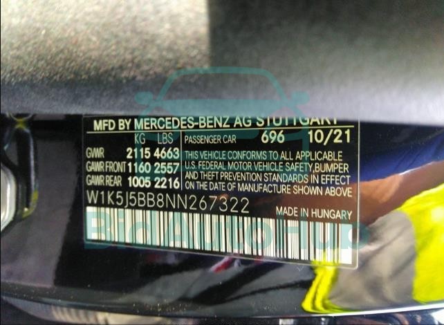 | VIN | W1K5J5BB8NN267322 |