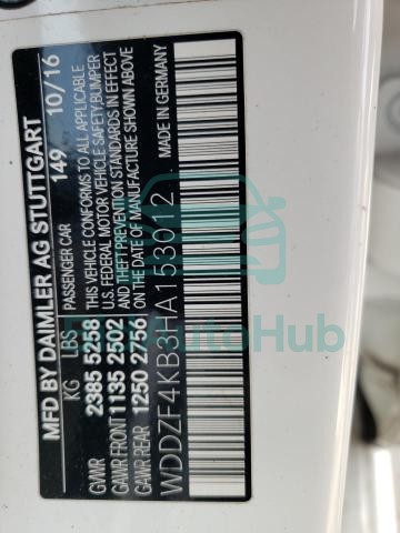 Each lot presented on our website includes comprehensive information tied to the VIN code. This allows users to cross-check vehicle data, verify the history of ownership, and confirm accident or insurance records. The MERCEDES-BENZ E-CLASS 2017 - VIN: WDDZF4KB3HA153012 corresponds to a car that was listed through one of the large insurance auctions in USA, which guarantees traceability and transparency of the information.