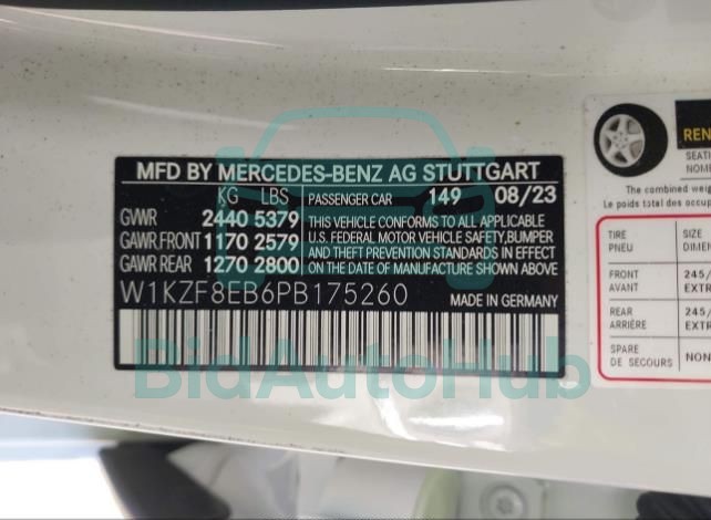 Each lot presented on our website includes comprehensive information tied to the VIN code. This allows users to cross-check vehicle data, verify the history of ownership, and confirm accident or insurance records. The MERCEDES-BENZ E-CLASS 2023 - VIN: W1KZF8EB6PB175260 corresponds to a car that was listed through one of the large insurance auctions in USA, which guarantees traceability and transparency of the information.