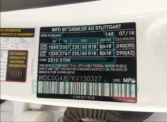 | VIN | WDC0G4JB7KV130327 |
