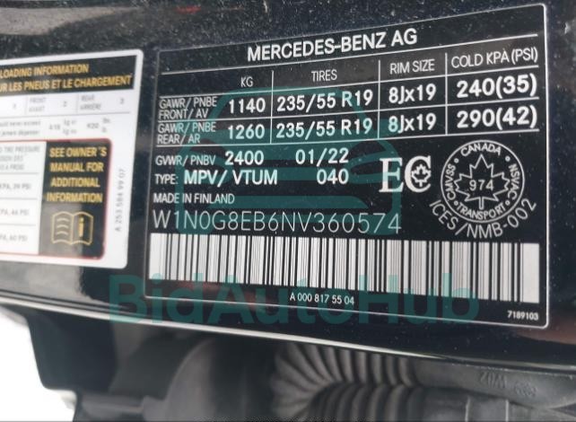 | VIN | W1N0G8EB6NV360574 |