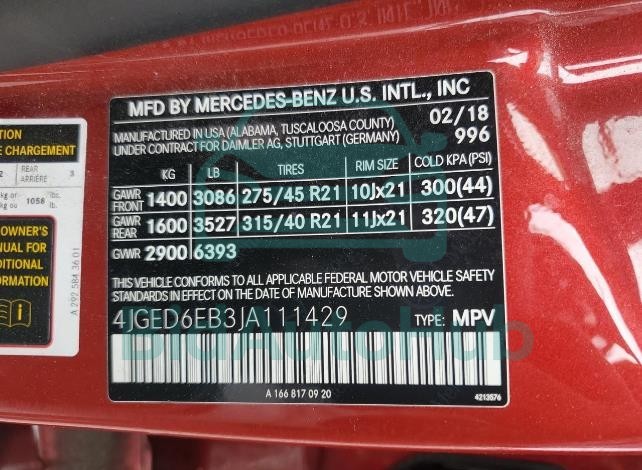 | VIN | 4JGED6EB3JA111429 |
