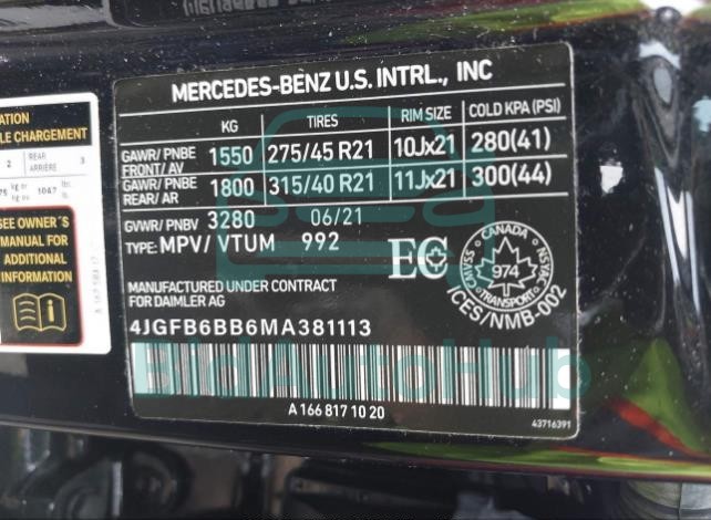 | VIN | 4JGFB6BB6MA381113 |
