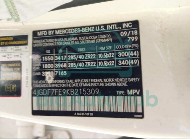 Each lot presented on our website includes comprehensive information tied to the VIN code. This allows users to cross-check vehicle data, verify the history of ownership, and confirm accident or insurance records. The Mercedes-Benz GLS-klasse 2019 - VIN: 4JGDF7FE9KB215309 corresponds to a car that was listed through one of the large insurance auctions in USA, which guarantees traceability and transparency of the information.