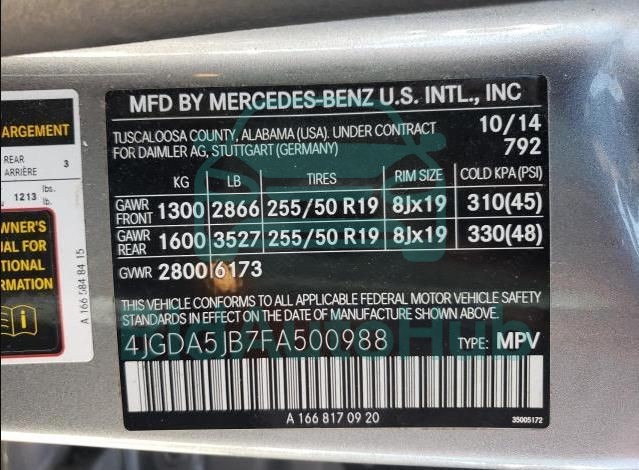Each lot presented on our website includes comprehensive information tied to the VIN code. This allows users to cross-check vehicle data, verify the history of ownership, and confirm accident or insurance records. The MERCEDES-BENZ ML-CLASS 2015 - VIN: 4JGDA5JB7FA500988 corresponds to a car that was listed through one of the large insurance auctions in USA, which guarantees traceability and transparency of the information.