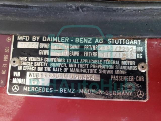 For a full understanding of the condition of this MERCEDES-BENZ SL-CLASS 1989 - VIN: WDBBA48D5KA096434, it is strongly advised to analyze all available materials β€” both technical specifications and auction photographs. Such analysis provides the most objective picture of the car’s history, its advantages, and its potential defects.