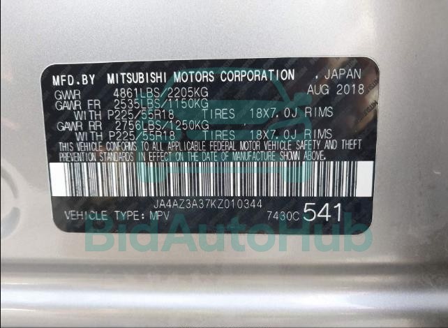 For a full understanding of the condition of this MITSUBISHI OUTLANDER 2019 - VIN: JA4AZ3A37KZ010344, it is strongly advised to analyze all available materials β both technical specifications and auction photographs. Such analysis provides the most objective picture of the carβs history, its advantages, and its potential defects.